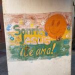 –I hagen har barna malt en fargerik vegg med påskriften « Smil! Jesus elsker deg»